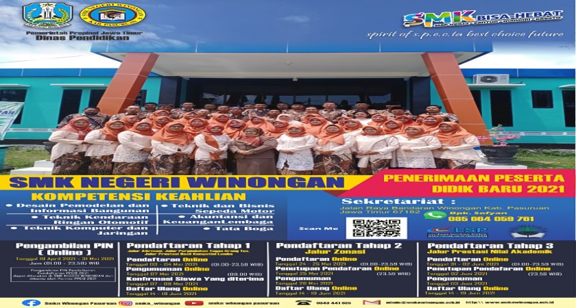 Pelaksanaan PPDB SMKN WINONGAN Tahun Pelajaran 2022/2023.Bertemu lagi dengan agenda tahunan penerimaan peserta didik baru tahun pelajaran 2022/2023. Ayo ajak saudara, teman, tetangga da